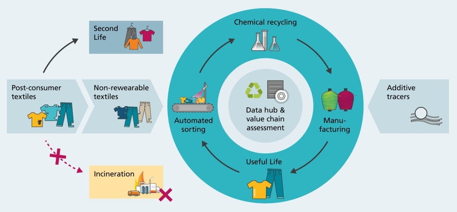 • Jährlich 1,24 Millionen Tonnen Textilabfälle recyceln.