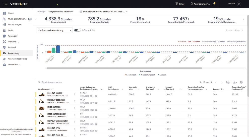 VisionLink gibt Auskunft über die Auslastung im Fuhrpark. Grafik: Zeppelin