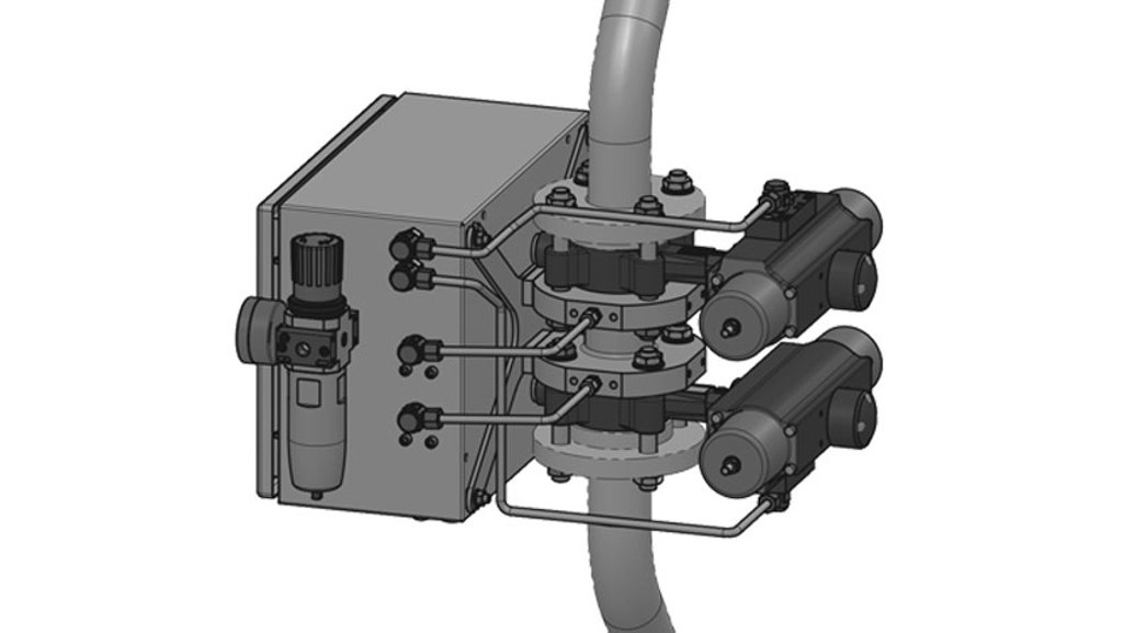 Titelbild: DewTector in einer typischen Bypass-Leitungsanordnung. Sein kompaktes Design mit einer Höhe von nur 184 mm (Flansch zu Flansch) vereinfacht die Prozessintegration.