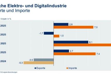 Die Exporte der deutschen Elektro- und Digitalindustrie sanken im August 2025 auf 18,3 Milliarden Euro und verfehlten damit den Vorjahreswert um 1,7 Prozent.
