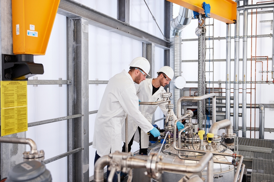 Kunststoffrecycling - Probennahme am Lösekessel im TechnikumNeues Großtechnikum in Freising eröffnet