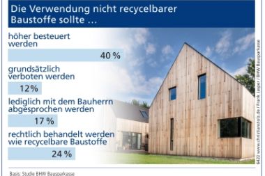 60 Prozent der Deutschen sprechen sich dafür aus, beim Bauen ausschließlich recycelte oder recycelbare Baustoffe zu verwenden. Das zeigt eine neue, repräsentative Umfrage der BHW Bausparkasse. 40 Prozent der Befragten fordern sogar höhere Steuern, damit sich die ressourcenschonende Wiederverwendung wertvoller Rohstoffe durchsetzt.