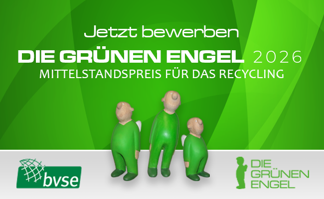 Ab sofort können sich Unternehmen und Persönlichkeiten der mittelständischen Recycling- und Kreislaufwirtschaft für den Mittelstandspreis für das Recycling „DIE GRÜNEN ENGEL 2026“ bewerben – oder von Dritten nominiert werden. Die Teilnahme ist kostenfrei. Einsendeschluss ist der 31. Januar 2026.