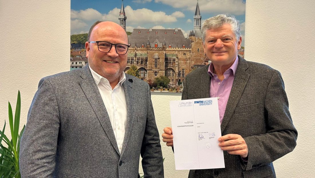Am 27. November 2025 wurde Herrn Thomas Dr. Probst der Titel Honorarprofessor durch Prof. Peter Kukla, PhD, Dekan der Fakultät für Georessourcen und Materialtechnik der RWTH Aachen, verliehen.