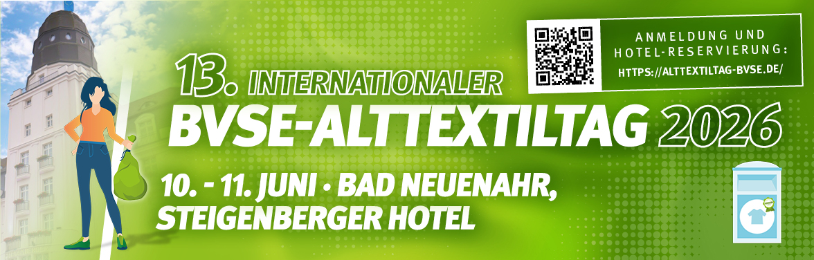 Beim Tagungshighlight des bvse-Fachverbands Textilrecycling stehen die zentralen Entwicklungen zu Textilverordnung, EPR und technische Innovationen im Mittelpunkt. Die Anmeldung ist bereits heute möglich!