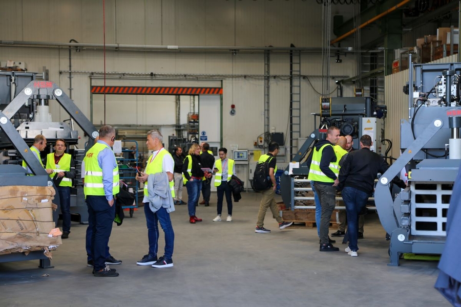 Natürlich konnten sich die Gäste vor Ort an einer Vielzahl von ausgestellten Produkten direkt von der hohen Produktqualität überzeugen. Neben vertikalen und horizontalen Ballenpressen konnten auch viele der in der Produktion befindlichen vollautomatischen Kanalballenpressen aus der Nähe in Augenschein genommen werden. Für die Planung verantwortliche Projektingenieure standen dabei für die Beantwortung der zahlreichen Fragen zur Verfügung.