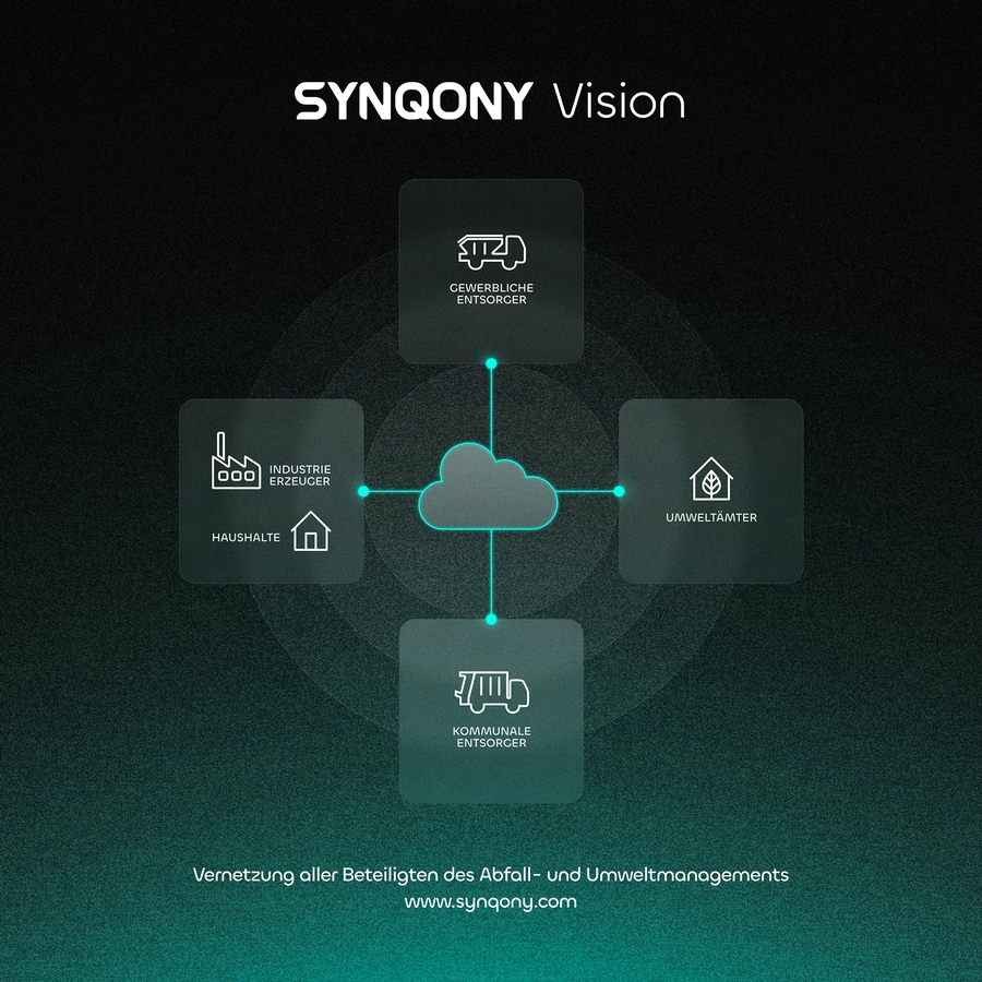 Die Gründung von SYNQONY basiert auf der Idee, alle Beteiligten im Abfall- und Umweltmanagement unter einem Dach zu vernetzen. So werden nachhaltige Verbesserungen und Effizienzsteigerungen erreicht. Die Zukunftsvision besteht darin, den gesamten Lebenszyklus des Abfalls nahtlos zu digitalisieren – von seiner Entstehung, über den Transport bis zum Recycling bzw. der Entsorgung und weiter bis zur Kommunikation mit den Umweltbehörden. Dieser transformative Ansatz verspricht die Eliminierung veralteter Prozesse, wie die Nutzung von Excel, diversen Insellösungen oder sogar Papier.