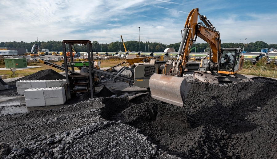 Damit verfolgt das Unternehmen das Ziel, entstehende Nebenprodukte aus dem Stahlerzeugungsprozess einer nachhaltigen, weiteren Nutzung zuzuführen. Bei der Georgsmarienhütte GmbH, dem größten Produktionsstandort der GMH Gruppe, entstehen bei der Stahlerzeugung jährlich rund 90.000 bis 120.000 Tonnen Elektrolichtbogenofen-Schlacke (EOS). Um dieses Nebenprodukt als Wertstoff weiter nutzbar zu machen, hat das Unternehmen nun im Hafen in Spelle-Venhaus einen der modernsten Schlackenaufbereitungsplätze Europas in Betrieb genommen. Auf einer Fläche von aktuell 2,3 Hektar – erweiterbar auf bis zu 4,6 Hektar – können täglich bis zu 1.000 Tonnen EOS für die weitere Nutzung aufbereitet werden.
