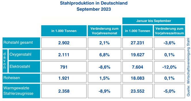 In die gleiche Richtung zeigt die aktuelle Statistik der Wirtschaftsvereinigung Stahl zur Rohstahlproduktion in Deutschland. So ging die Menge an Elektrostahl von Januar bis September gegenüber dem Vorjahreszeitraum um 12 Prozent zurück. Dies macht deutlich, wie stark gerade die stromintensive, aber heute schon relativ CO2-arme Elektrostahlherstellung von den anhaltend hohen Kosten für Elektrizität betroffen ist.