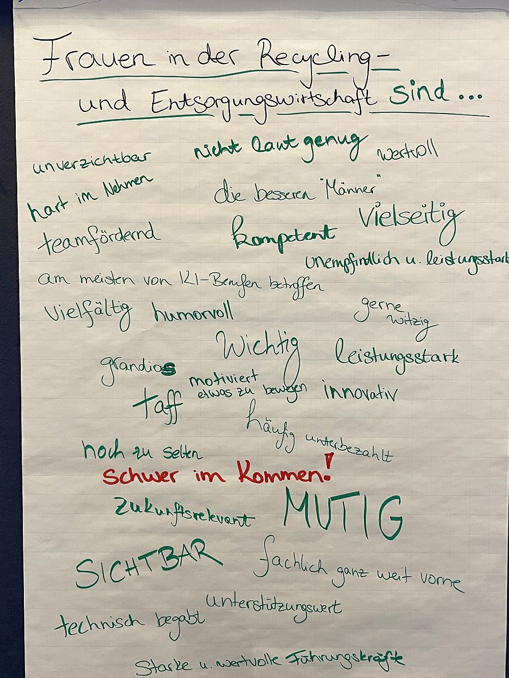 Dem passiven Zuhören der Teilnehmenden, bei denen der Vortrag auf großes Interesse gestoßen ist, folgte ein interaktiver Austausch unter dem Motto „Gut vernetzt ist halb gewonnen“. Hier hatten alle Anwesenden die Möglichkeit, sich einander kurz vorzustellen und den Satz „Frauen in der Recycling- und Entsorgungswirtschaft sind…“ mit ihrem Beitrag zu ergänzen. Vielfältige und positive Statements entließen die Sitzungsgäste inspiriert in den weiteren Verlauf der Jahrestagung.